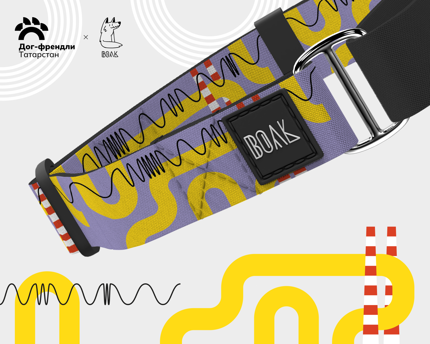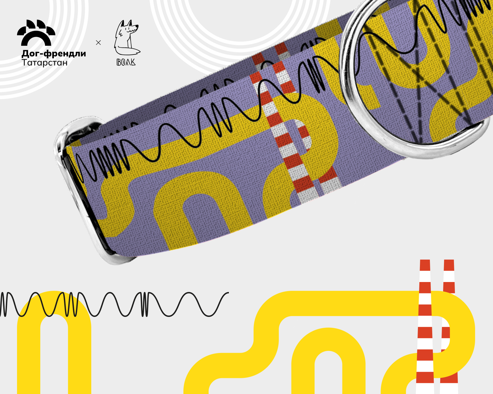Огромные желтые трубы отлично вписались в ландшафт сквера. Именно они создают футуристичную атмосферу, которую мы постарались отразить в этом дизайне. И получилась идеальная амуниция для настоящих модников и бунтарей!