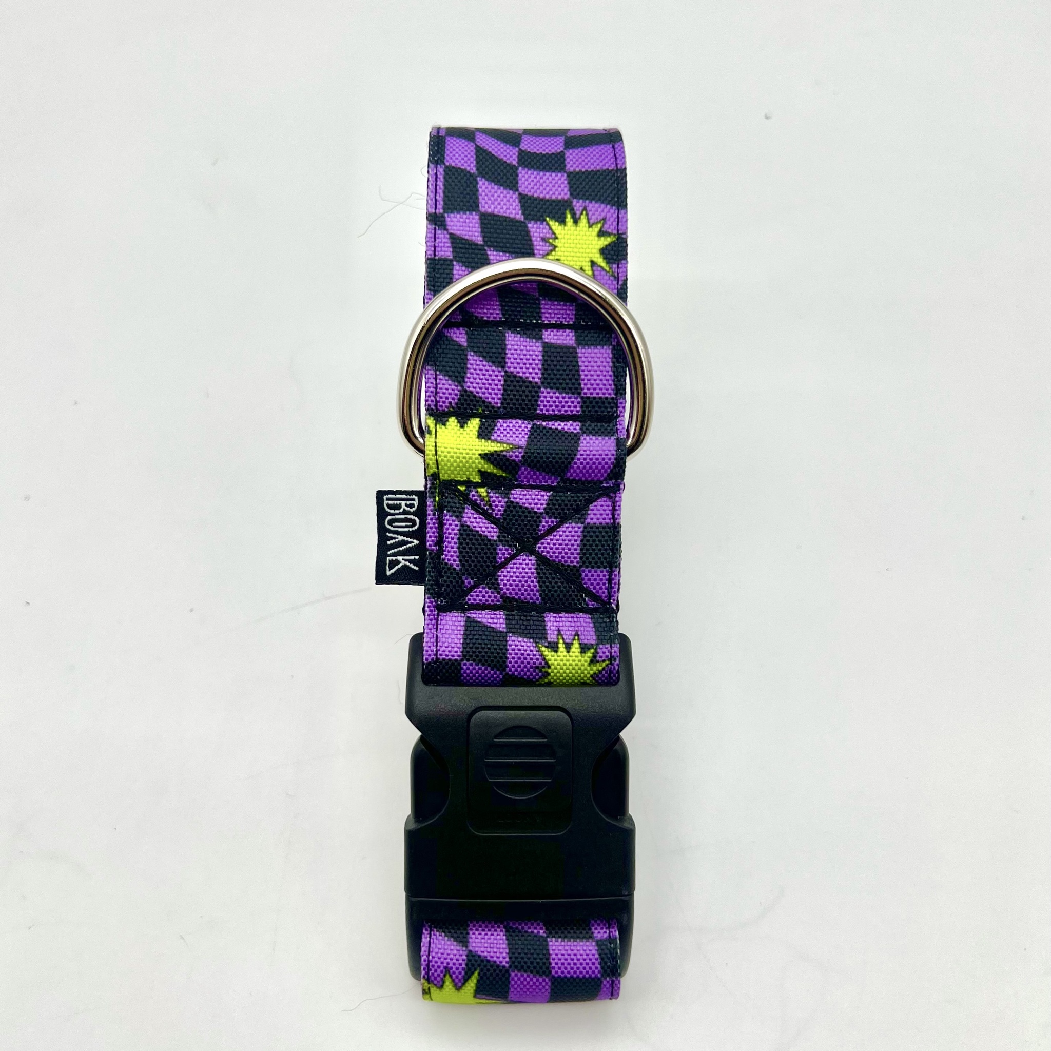 Фиолетовая клетка с неоновыми вспышками - как вечерний город, когда идёшь с наушниками, а фонари моргают в такт треку (ну или почти в такт). Вдохновлено старыми фото с пленочки, где всё чуть размыто и оттеночно, а сбоку засвет, только от этого ещё теплее.