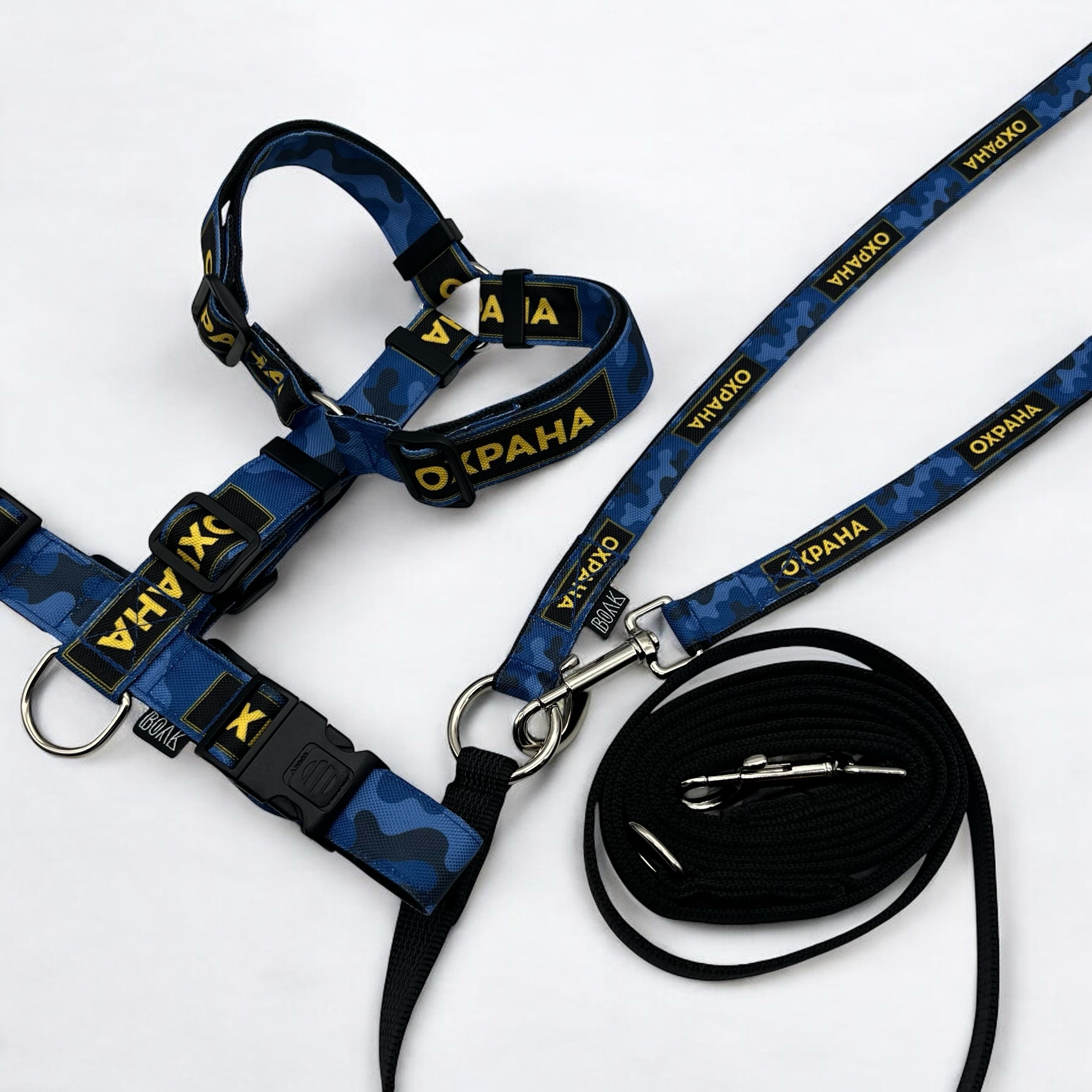 Часть перестежки через плечо выполнена из стропы с покрытием из ткани Oxford600 с выбранным принтом, основная длина – из прорезиненной стропы стандартного цвета. Оснащена карабинами из цинкового сплава