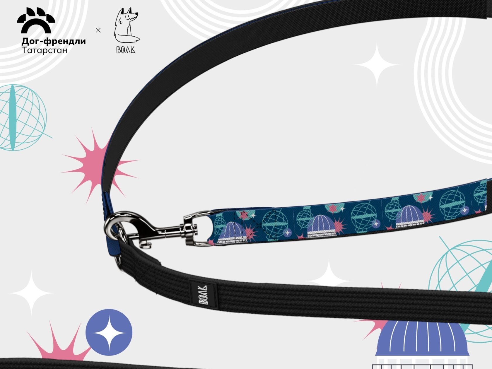 - Полиэфирная стропа плотного плетения — износостойкая и гибкая, не вызывает дискомфорта у собаки